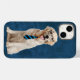 Retalhista de ouro com gravata riscada e óculos pretos sobre fundo de couro azul. O plano de fundo pode ser alterado.