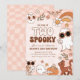 Celebre o seu segundo aniversário com uma retro torção! Este convite de aniversário para o Dia das Bruxas "Dois Spooky" editável apresenta gráficos lúdicos inspirados em vintage, tons retrorados cor-de-rosa e castanhos e elementos assustadores — perfeito para uma celebração divertida e na moda de outubro.