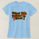O que você está falando sobre T-Shirts. Laranja, vermelha e amarela, com grande ponto de interrogação.