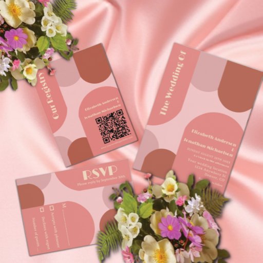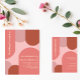 Coleção de casamentos com arcos de moda com coral, rosa empoeirado, rosa-pincel e terracota com tipografia de pêssego mole