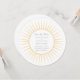 Desafio Retro sofisticado e elegante Salve o Anúncio de data em amarelo apresentando um design de explosão solar decorativa de arte circular. Fácil de personalizar, basta adicionar os detalhes do casamento nos campos de texto fornecidos. Clique em "Personalizar" para encontrar mais opções de personalização.