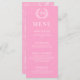 Elevem sua celebração de casamento com esses cartões de cardápio boêmicos e elegantes e cor-de-rosa. Adorados com flores brancas e apresentando uma coroa floral clássica com noiva e monograma nobre no topo, esses cartões adicionam um toque de elegância eterno ao seu dia especial. Explore os cartões de menu perfeitos para uma celebração memorável.