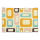 Retro geometric pattern with overlapping rectangles and ovals in orange, teal, pink, and brown on a light beige background, creating a playful, vibrant mood.