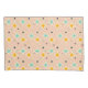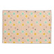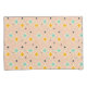 Retro geometric pattern with teal, orange, and black star-shaped diamonds on a peach background. The design conveys a playful, vintage feel.