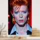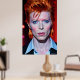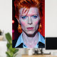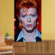 Dit expressieve portret vangt de onmiskenbare geest van de jaren tachtig: vurige oranje lokken, een indringende blauwe blik en een rood verlichte achtergrond vol spanning en podiumenergie. De mix van glamrock, new wave en retro mode geeft deze poster een gedurfde, artistieke uitstraling. Perfect voor liefhebbers van vintage esthetiek, neon sfeer, muziekcultuur en tijdloze rebellie aan de muur.