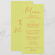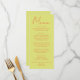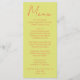 A colorful retro funky modern green orange wedding dinner menu. Which features chic template design of boho vintage green background on the front and pink on the back. With orange whimsical typography. Perfect and matching with the whole suite.