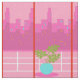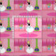 Isto retro no tecido cor-de-rosa olha como uma cena fora de uma comédia romântica dos anos 60. O design minimalista mostra uma mulher sofisticada no seus ultra kitschy e ultra cor-de-rosa, apartamento da sótão de luxo. A sala caracteriza uma parede de tijolo cor-de-rosa com linhas brancas do grout. Na frente da parede, há uma lareira verde do cone com um fogo rujir. Através das portas de vidro de deslizamento nós vemos um balcão cor-de-rosa com uns trilhos brancos. Uma planta luxúria, tropical está em um flowerpot do aqua. A vista do balcão é de uma silhueta de uma skyline grande da cidade. Naturalmente, a silhueta está nas máscaras do rosa! Um amarelo, lua crescente está no céu. Estando em um rosa quente, o tapete de shag no apartamento é a senhora principal deste design. Em total contraste com o mundo que rosado criou, o louro bonito está vestindo um encaixe do formulário, preto, parte superior colher-necked com uma saia longa, alargada, branca com enfeites pretos da pena. Com este design, você demasiado pode olhar o mundo através dos vidros coloridos rosa!