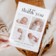 Anúncio de nascimento simples e minimalista e cartões de agradecimentos com fonte retrô com uma espiral que diz "obrigado você" no topo com 4 fotos na frente.