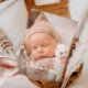 Cartão de nascimento retrorreflector e minimalista com texto que diz "obrigado você" em negrito, com estrelas como uma sobreposição sobre a sua foto.