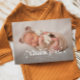 Cartão de nascimento retrorreflector e minimalista com texto que diz "obrigado você" em negrito, com estrelas como uma sobreposição sobre sua foto horizontal.