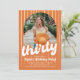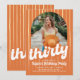 Fazer 30 anos nunca parecia tão divertido! Este vibrante convite para aniversário de 30 anos apresenta faixas laranja em negrito, texto de script branco e espaço para uma foto personalizada. É a combinação perfeita de encanto retrô e estilo moderno para lançar sua celebração de marco com talento. Totalmente personalizável para corresponder à sua vibração partidária!