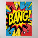 Esta poster é uma ode à energia caótica e explosiva de um climax clássico dos quadrinhos. É um evento visual com múltiplos efeitos gráficos — desde o estouro vermelho e vermelho agitado e as estrelas brancas sobrepostas até as linhas de movimento dinâmicas — todos trabalhando juntos para capturar um momento poderoso e solteiro de impacto. Esta peça comemora a arte cinética e divertida da narrativa clássica dos quadrinhos e é a mais dinâmica dos designs "BANG!". É especial porque seu design de alto impacto e elementos caóticos captam perfeitamente a energia bruta de uma cena de ação de quadrinhos, fazer um tributo excelente à linguagem visual das histórias em quadrinhos de safra. Esta arte confiante e animada é uma afirmação ousada, perfeita para adicionar entusiasmo a qualquer espaço.