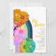 Um arco-íris coberto de margaridas retrorais faz deste convite de chá de fraldas um convite divertido. A vibração do corante da gravata nas flores é super groovy. O ajustado de tipografia parece incrível! Adicione os detalhes da sua festa e o nome especial da futura mãe. Veja a coordenação de itens no nosso compro, Encantado Finch.