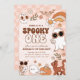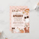 Celebre seu primeiro aniversário com uma retro torção! Este convite de aniversário de "Spooky One" editável para o Dia das Bruxas apresenta gráficos lúdicos e inspirados em vintage, tons retrorreflectores cor-de-rosa e castanhos e elementos assustadores — perfeito para uma celebração divertida e na moda de outubro.