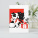 Trabalho de arte de 1930, representando um par preto e branco de Terriers escoceses e um presente de Natal.