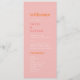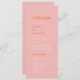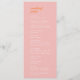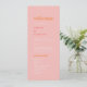 Este programa de casamento cor-de-rosa e laranja é perfeito para um casamento colorido. O único design de vintage moderno apresenta uma paleta cor rosa-rosa-claro, laranja-clara e vibrante e cor-de-rosa-quente com vibrações tropicais divertidas. Inclua o nome da noiva e do noivo, a data e o local do casamento, a mensagem do obrigado, a ordem do serviço, a festa noiva e um memorial "em memória amorosa" opcional.
