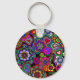Um chaveiro com um design vivo e colorido de sinais de paz, paisley, tornozelos, corações e flores. Um flash distante de volta aos anos 60.