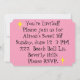 Este Retroativo Personalizável no Convite Rosa parece uma cena de uma comédia romântica de 1960. A design minimalista mostra uma mulher sofisticada em seu apartamento ultra-gordinho e ultra-rosa, com cobertura. A sala apresenta uma parede de tijolos cor-de-rosa com linhas de caldas brancas. Em frente à parede, há uma lareira de cone verde com um fogo rajado. Através de portas de vidro deslizantes vemos uma sacada cor-de-rosa com uma grade branca. Uma planta exuberante e tropical está num vaso de água. A vista da varanda é de uma silhueta de um horizonte de uma cidade grande. Claro, a silhueta está em tons de rosa! Uma lua amarela e crescente está no céu. Ficando em um tapete rosa quente, o shag tapeado no apartamento é a principal dama deste design. Em flagrante contraste com o mundo rosado que ela criou, a bela loira está vestindo uma forma de topo, preto, colado a colher, com uma saia branca longa, esfolada, com embelezamentos de penas pretas. Com esta design, vocês também podem olhar para o mundo através de óculos rosa! O lado oposto deste convite bonito é cor-de-rosa com bastante espaço para personalizar o seu evento especial — seja uma festa Sweet 16, um chá de panela, ou apenas uma diversão!