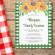 Planejar uma reunião de família? Convide a sua família para a reunião com este convite para a reunião da família do orçamento, que é decorado com girassóis de aquarela e verde num fundo de gingham verde. Facilmente personalizável. Use a Ferramenta Design para alterar o tamanho, o estilo ou a cor do texto. À medida que criamos a nossa trabalho de arte, não encontraremos esta imagem exata de outros designers. Original Watercolor © Michele Davies.