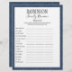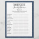 Divirta-se a jogar este jogo divertido e rápido na sua próxima reunião de família. Pense em 3 itens em cada categoria o mais rápido possível. A pessoa com as respostas mais corretas ganha! As instruções e cada item da lista podem ser criados por você. Fundo de damasco azul.