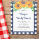 Planejar uma reunião de família? Convide sua família para a reunião com este convite de família de orçamento decorado com girassóis de aquarela e verde em um fundo de gingham azul. Facilmente personalizável. Use a Ferramenta Design para alterar o tamanho, o estilo ou a cor do texto. Original Watercolor © Michele Davies.