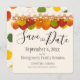Envie o anúncio do cartão de saudação "Salvar a Data" para a data de reunião da sua família, com uma borda superior de queda colorida Folhas de árvore Aspen e luzes de vaga-lume em uma corda. Personalize o texto nos campos modelo ou edite usando a ferramenta design para selecionar um estilo de fonte, tamanho e cor que você preferir.