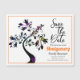 O lado direito deste design de anúncio de cartão de reagrupamento da família "Salvar a Data" apresenta uma árvore moderna com cores de entrada multicolorido nas flores. O lado direito do anúncio contém as informações de modelo. A borda laranja e a cor do nome correspondem à cor de entrada da árvore. Personalize as informações de modelo, remova o texto e/ou edite usando a ferramenta design para selecionar uma cor, tamanho e estilo de fonte preferidos. Você pode solicitar esta placa de ímã com ou sem envelopes.