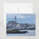 Este cartão caracteriza uma foto de Reykjavík, vista da água. Você pode ver Hallgrímskirkja elevar-se sobre o outro, construções menores.