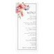 This BUDGET wedding menu card showcase a delicate rhododendron branch adorned with peach-pink blossoms and sage green green leaves. Encircling the design is a sleek black border, adding a touch of elegance to the overall look. The word 'MENU' and the names of the couple are artistically presented in decorative typography, enhancing the visual appeal of the card. On the reverse side, a solid black color provides a striking contrast, making the card both stylish and budget-friendly.