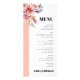 Rhododendron branch and peach pink flowers wedding menu card. This budget-friendly wedding menu card features an elegant, nature-inspired design. A graceful rhododendron branch with soft peach-pink blooms embellishes a crisp white border, while a peach-pink panel on the left side enhances its refined appeal. The word “MENU” and the couple’s names stand out with bold, striking typography for easy readability. On the back, a peach-pink hue maintains visual harmony, completing a cohesive and stylish look.