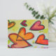 Pêssego, rosa e corações cor de laranja voam através da pintura como folhas de queda soltas pegas em uma brisa. Um contorno verde traça cada coração. Pontos de cor amarelo pálido são como confete entre os corações. A pintura a aquarela tem uma camada clara de ouro e rosa no topo. Os corações de riso são um detalhe da pintura "Ria" da Palavra Inspiracional. Personalize este convite com seu próprio texto e imagens usando a opção Personalizar Ti para fazer seus próprios convites especiais! Produto da venda do presente concurso de apoio à DonnaBellas Angels, sem fins lucrativos 501(c)3.