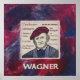 Um novo retrato do compositor alemão do excelente Richard Wagner, ilustrador e impressor inglês Paul Helm. O fundo lista algumas de suas obras mais conhecidas.