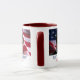 Este copo de café tem uma foto do governador republicano Rick Perry na frente de uma bandeira americana que acena no vento.