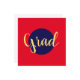 Este design de modelo divertido apresenta o texto "Formando" do script amarelo quente, festivo e centrado em frente a um círculo central azul marinho e fundo vermelho vivo vibrante. O texto pode ser personalizado.