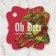 Oh veado, que ano! Etiqueta de presente de Natal. Reindeer Verde / Fundo Vermelho. Vintage efemera, design moderno.