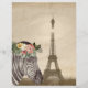 Fotografia de fundo vírgula sépia tint da Torre Eiffel com cobertura de um belo retrato de zebra com cor d'água com coroa floral