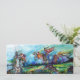Cavalos medievais com cavalos, pintura figurativa colorida e expressiva contemporânea em azul vibrante, vermelho, verde branco, castanho, aquarela de Alessandro Lumini 1989 inspirada na lenda do Rei Arthur e nas Cavalarias da Mesa redonda. Este design legal e artístico também é um belo presente para o Natal e ocasiões especiais.