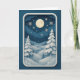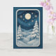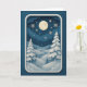 Um rio sinuoso atravessa colinas nevadas sob uma lua cheia brilhante nesta ilustração em estilo de recorte de papel em camadas. Árvores estilizadas de pinheiro, flocos de neve caindo e silhuetas de montanhas distantes criam uma paisagem invernal serena renderizada em tons suaves de azul e branco. O céu estrelado e os detalhes intrincados dos flocos de neve evocam um silêncio maravilhado e uma quietude emocional.