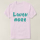Ria mais! É uma afirmação tão simples, e ainda assim pode ser tranquilizante. Quando você muda sua atitude, e vê o lado brilhante da vida, você ri mais. E rir é o melhor remédio. Rir é alegria, alegria é paz. Disponível em mais de 50 t-shirt e artigos de roupa para adultos e crianças, bem como em capas de telefone celulares, canecas e artigos de bebidas, gravatas e presentes de todos os tipos. Copyright Scarebaby Design.