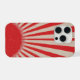 A bold retro-inspired rising sun design with strong red rays spreading across a textured vintage background. The distressed effect adds a classic, aged look while the radial composition creates a powerful and dynamic visual impact.