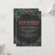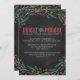 Risque o tinir e misture convites da festa natalícia - características um fundo impresso do giz com pinho da aguarela e sprigs spruce com bagas e folhas do azevinho. O tinir e Mingle são imprimidos em uma pia batismal vermelha e verde do divertimento.