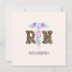 Este design bonitinho apresenta as letras "RN" em um impressão de cor-leopardo com um logotipo médico colorido. É perfeito para enfermeiras registradas.