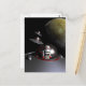 Um grupo de 3 robôs retrorados - discos-mosca 7 em torno de uma lua pequena