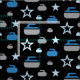Caracterização do tecido estrelas e teste padrão de ondulação das rochas nas máscaras de azul e do cinza no fundo preto. Aperfeiçoe para encrespadores e fãs de ondulação