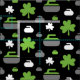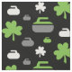 Tecido que caracteriza um trevo e que ondula o teste padrão da rocha no verde, no branco e no cinza no fundo preto. Aperfeiçoe para encrespadores e fãs de ondulação