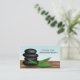 Cartões de visitas com uma ilustração pacífica das rochas spa e folhas de bambu numa mesa de bambu para o seu spa e resort de relaxamento ou negócio local.