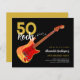 50 Rocks 50th convites de aniversário com uma legal guitarra com padrão de chama Fire e uma pintura vermelha de guitarra de guarda vermelha e ilustração musical com tipografia personalizada de caligrafia moderna em preto e ouro. Essa modelo fácil de usar cria o convite personalizado perfeito para celebrar cinquenta no estilo rock n roll e é ideal para um guitarrista, músico e amante da música. Qualquer guitarrista lhe dirá que você nunca pode ter muitas guitarras. Este legal instrumento musical moderno design comemora a energia musical deste maravilhoso instrumento musical e é a forma perfeita de celebrar o quinquagésimo aniversário. Arte original da artista Catherine Sweetman