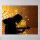 Um guitarrista rochoso tocando guitarra contra um fundo. Esta design parece realmente eficaz nestes Poster