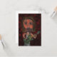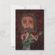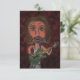 Uma imagem digital de uma estrela rock queimada criada de um desenho a lápis. O músico está tocando violão verde e tem cabelo castanho e pele rosada. O personagem de desenho animado tem grandes lábios e círculos escuros à volta dos olhos. O fundo é um vermelho escuro queimado com espirais de preto e um sutil efeito de zoom.