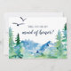 Essa Montanha Rocky será minha madrinha de casamento perfeita para um casamento ao ar livre. O design apresenta uma paisagem de natureza selvagem pintada, azul e verde, com pinheiros de aquarela, pássaros e montanhas. Personalize a placa com o nome da noiva e da dama de honra. Personalize a parte traseira do cartão com uma mensagem personalizada.
